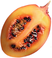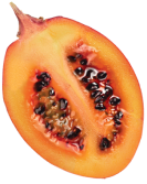 Плоды вечнозеленой цифомандры, или томатного дерева. Этот плод, созревающий в тропическом климате, – настоящая экзотика. Он действительно напоминает длинноплодные томаты. А в его кисло-сладко-соленой мякоти привкус томата неожиданно переплетается с оттенками крыжовника, смородины и даже маракуйи.